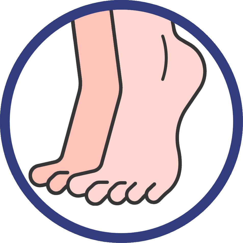 Tight calf muscles, shortened Achilles tendon, back problems, trips & falls
